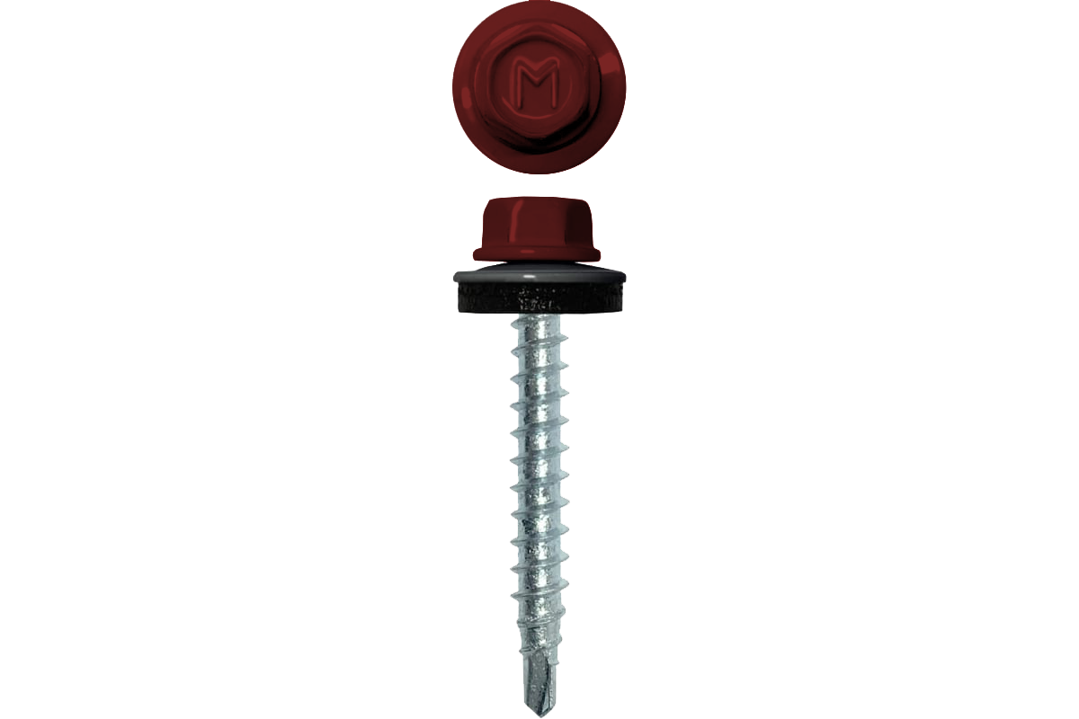 Саморез выполнен из стали С1022. Головка с внешним шестигранником и EPDM-уплотнитель окрашены полиэфирной краской в коричнево-красный цвет.