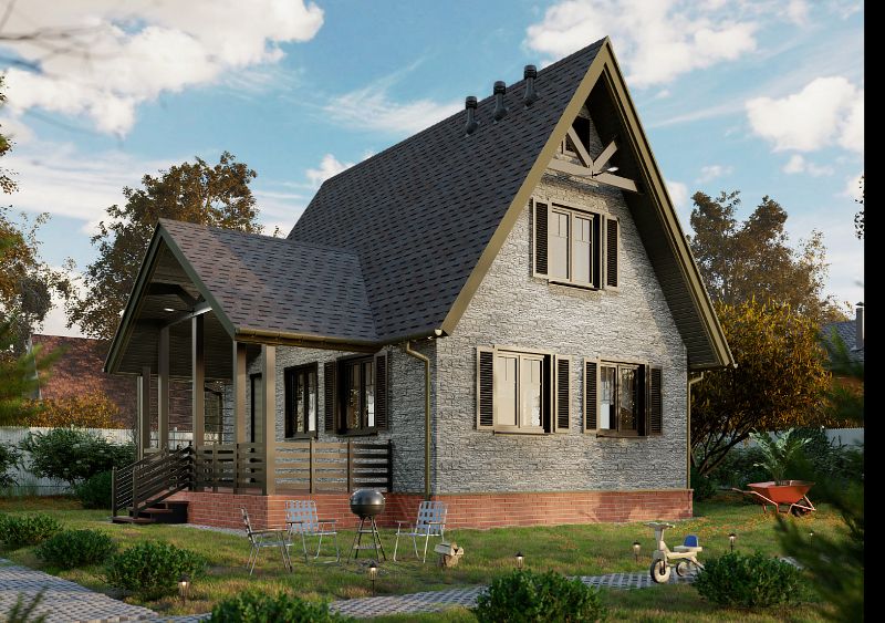Углы с фактурой слоистого песчаника аккуратно закрывают торцы панелей и помогают создать эффект цельной облицовки. Для полной имитации каменной кладки используйте фасадные панели STEIN.