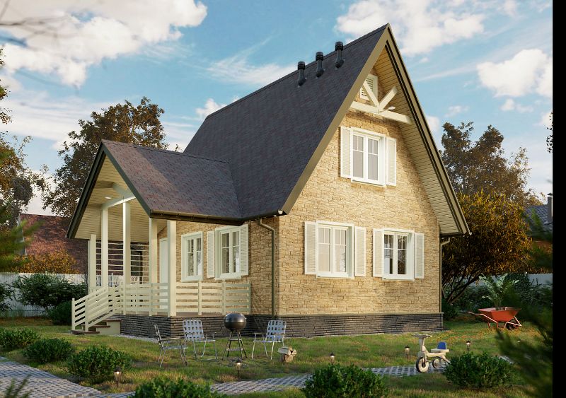 Углы с фактурой слоистого песчаника аккуратно закрывают торцы панелей и помогают создать эффект цельной облицовки. Для полной имитации каменной кладки используйте фасадные панели STEIN.